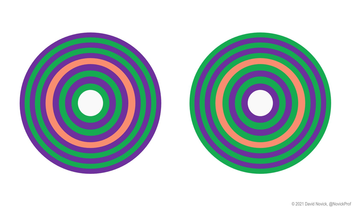 poggendorff.to_image()A neutral gray target will appear lighter or darker than it does in isolation when compared to, respectively, a dark gray or light gray target. Simultaneous contrast, identified by Michel Eugène Chevreul, refers to the manner in which the colors of two different objects affect each other.